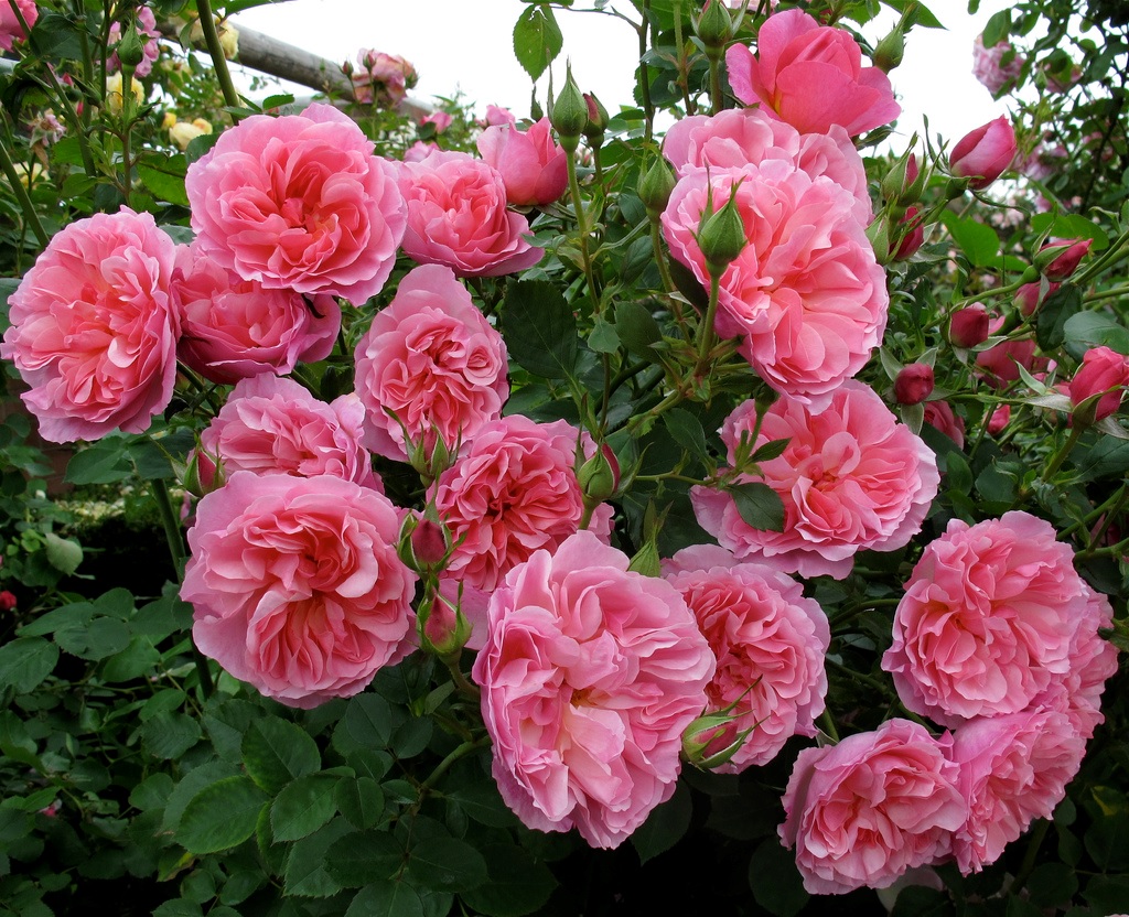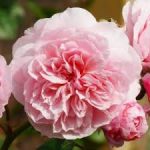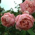H=1,2m.; pl- 0,9m.; ziedi koši rozā ieapaļas formas; aromāts viegls; izturīga pret slimībām un lietu;