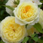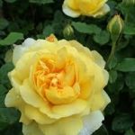 H=1,2m.; pl-0,9m.; ziedi koši citrondzelteni, ļoti aromātiski, pildīti; lapas spīdīgas; izturīga pret slimībām un lietu;